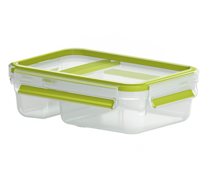 La gamme de boîtes en plastique Masterseal To Go est spécialement conçue pour le transport des aliments. Grâce au joint fraîcheur, les aliments restent frais plus longtemps. Les boîtes de cette gamme garantissent étanchéité et hygiène. Sans BPA. Compatible congélateur, lave-vaisselle, micro-ondes (en posant le couvercle dessus max 1,5 min à 600W). Norme baby care (certifié convenant aux aliments pour bébés)