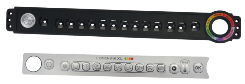 Description : Cadre de façade gris de rechange pour gril à viandes Tefal Optigrill + XL. Ce cadran se trouve sur le devant de votre gril. Il est sérigraphié avec les boutons servant à intéragir avec les différentes fonctions de votre appareil. Derrière se trouve la carte électronique.