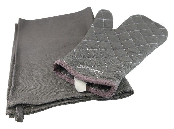 Description : Conçu par Cookut, ce set comprend un gant de cuisine, ainsi qu'un torchon en coton ultra-absorbant. Le gant rembourré, épais et confortable, permet de manipuler les plats chauds en toute sécurité. Le torchon grand format, lui, offre un essuyage minutieux de votre vaisselle. De plus, il résiste aux lavages fréquents et ne laisse pas de traces. Vous pouvez le suspendre pour le garder toujours à portée de main.
